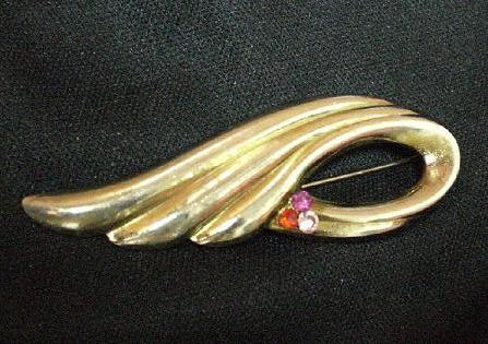 古董飾品修復。天使之翼綴三色萊茵石別針