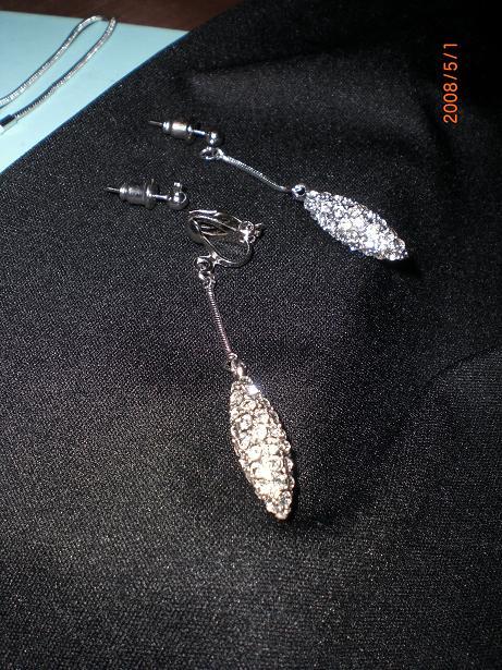 飾品修改。滿天星~橄欖球狀鋪鑽垂墜耳環:耳針改耳夾