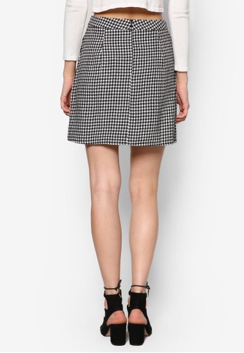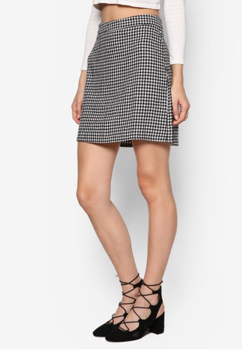 Fashion Union 的千鳥格紋短裙,採黑白單色千鳥格紋印花設計,是帶點復古風的百搭短裙款式。