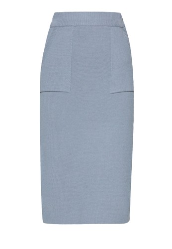 Among 的韓系時尚貼合袋針織及膝裙,採羊毛混紡及針織結構標準裁剪,簡約裙身配以二個貼合側口袋,是秋天保暖的休閒時尚單品。