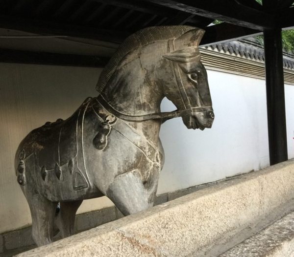 景區大門口高達9米的項羽騎烏騅馬雕像,高大威武。烏騅是項羽的坐騎,號稱「天下第一駿馬」。垓下大戰中,項羽命小卒牽烏騅渡江;烏騅咆哮跳躍,回顧霸王,長嘶數聲,往大江波心一躍,不知所往。忠心烈馬與自刎虞姬,令人喟嘆。