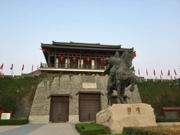 走進項王故里,迎面豎立著一座石牌坊,上書「項王故里」四個大字。牌坊建在古黃河大堤上,主體建築在堤下,居高臨下,整個建築群盡收眼底。