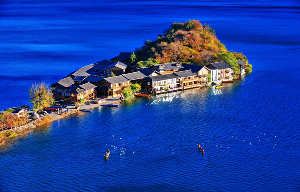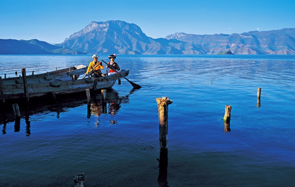 瀘沽湖位於雲南北部,橫跨川、滇兩省,是大陸第三大深水湖泊。納西族摩梭語「瀘」為山溝,「沽」為裡,意即山溝裡的湖。景區以典型高原湖泊自然風光,和獨特摩梭母系民族文化為主,瀘沽湖摩梭人仍保留著母權制家庭形式,被稱之為「神秘的女兒國」。