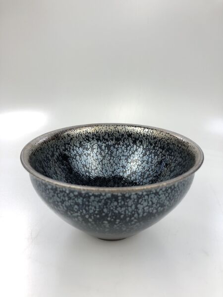 建盞,是宋代茶盞的代表,宋代的著名文人墨客,有一些名句來稱頌它。例如兔毫紫甌新、忽驚午盞兔毫斑、松風鳴雷兔毫霜、兔毫甌心雪作泓、鷓鴣斑中吸春露等。 宋徽宗喜愛建盞,在於建盞「燠發茶採色」,它厚厚的盞壁蓄熱佳,容易發茶,青黑色能夠突襯茶花的顏色,適宜鬥茶。北宋的貢茶區北苑在建州,建窯也在建州,建人謂鬥茶為茗戰。宋朝的鬥茶時尚,就以建州的茶文化為核心發展出來。建窯的建盞是專為鬥茶的技藝設計出來的茶盞,建盞和鬥茶文化相牽相繫,共同寫下北宋鼎盛的鬥茶史。 建盞是宋代茶盞的代表,也是宋代燒製最多的茶盞,從民間、官府到皇室御用,都有它的身影。以現代人的語言來說,以黑釉為基底的建盞,是宋代最知名的「鬥茶神器」。黑釉建盞樸實無華,美在自然,還有一些窯變盞,瞬間凝結的窯變紋路,妙在天成,受到注目。這些建盞的窯變盞天然秀出的風采,和宋代崇尚自然美學的宇宙觀相契合,緊緊吸引著茶家、文人雅士的藝術心靈。 建盞多是口大底小,有的形如漏斗;多為圈足,且圈足較淺,足根往往有修刀(俗稱倒角),足底面稍外斜,少數為實足(主要為小圓碗類)。造型古樸渾厚,手感普遍較沉。建盞分為敞口、撇口、斂口和束口四大類,每類分大、中、小型,小圓碗歸入小型斂口碗類。敞口碗,口沿外撇,尖圓唇,腹壁斜直或微弧,腹較淺,腹下內收,淺圈足。形如漏斗狀,俗稱「斗笠碗」。