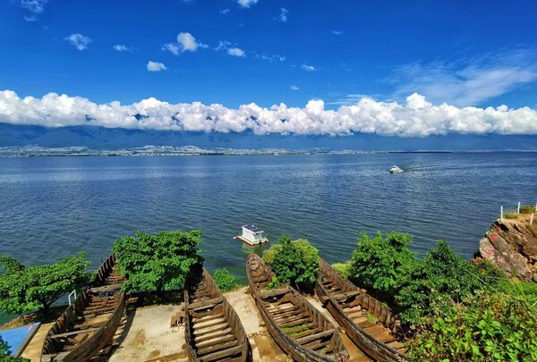蒼山洱海,位於歷史名城雲南大理白族自治州境內。蒼山為大理四大名景「風花雪月」之首,因山頂終年積雪「炎天赤日雪不融」,故稱四景之「雪」。洱海則屬「月」,金月亮升洱海,月圓如輪,浮光搖金。白族民謠「蒼山雪,洱海月,洱海月照蒼山雪。」譜繪出銀蒼玉洱幻美奇景。