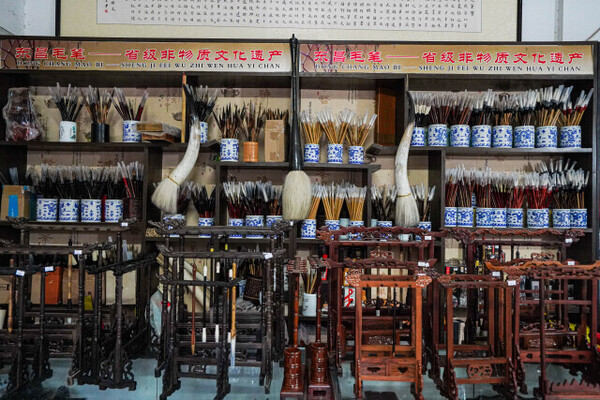 東昌毛筆是聊城一絕,外形美觀、剛柔並濟,含墨量多而不滴、行筆流暢而不漬,至今已有600餘年,品類多達200餘種。採「韋誕法」製作,需經72道工序方可完成,製作技藝已列入省級非物質文化遺產名錄。