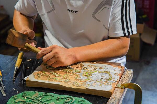 至今已有三百多年歷史的東昌府木版年畫,題材豐富、刀工精湛、工序嚴密。採用凸版手工印刷,共需四道工序,首先畫師定稿後,用白描法畫在毛邊或薄綿紙上;接著刻工以粉糊反粘在刨平木板上,完成墨線版;再來由畫師將墨線印出畫樣,點出顏色,刻工刻製出彩色套印版;最後印刷工將紙壓在刷印畫案,將紙刷完,再換另一顏色版,直到完成一幅畫。東昌府木版年畫歷來只有「草版」,即只印不畫,全部用木版分色套印,可用紅、黃、灰、青、黑基本色,最多為七色八版。畫面五彩繽紛,裝飾性強,人物面部不著色,使其形象更加突出醒目。