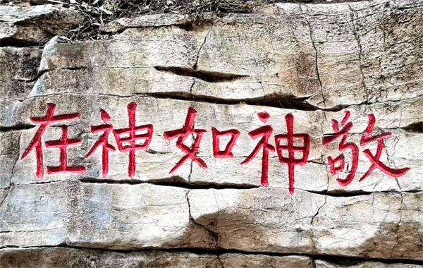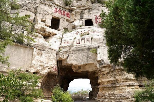 山陰處有大陸罕見的明代摩崖巨刻「壽」,即「雲門獻壽」。大明嘉靖三十九年九月初九,衡王府管家周全為衡王祝壽,以「壽比南山」之意而鑿,雲門山因此被譽為「中華古壽文化第一山」。「壽」字體結構嚴謹,端莊大方,坐南朝北,通高7.5公尺,寬3.7公尺,單是下部的寸」字就2.22公尺,為大個頭壯漢身高所不及,當地戲語「人無寸高」。