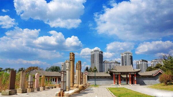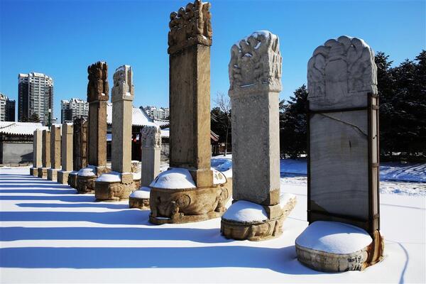 遼河碑林公園是東北最大的仿古建築,大陸平原地區面積最大的公園。是遼河流域截彎時留下的一段河灣,呈橢圓形。總面積1 6 7 公頃, 包含鶴鄉園區、自然風光區、動物園區、南部岸線區、遼河碑林區等。公園將書法、園林、石刻、建築藝術,以及詩、詞、歌、賦、奇文融為一體,創造出碑林與園林特色的「藝術大觀園」。