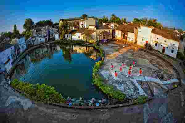 村落以鍾池為核心,半邊有水,半邊為陸,形如太極。八條小巷向外輻射,形成內八卦,村外八座小山環抱,形成天然的外八卦。古建築面面相對,背背相依,巷道縱橫,猶如迷宮。漫步古巷,便能感受到似連非連、半通不通、曲折玄妙的樂趣,素有「八卦奇村,華夏一絕。」之說。