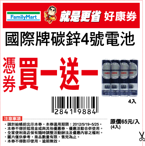 101/05/19~101/05/25 全家超商好康券