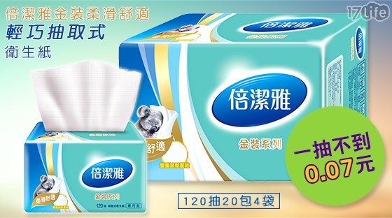 倍潔雅-倍潔雅金裝柔滑舒適輕巧抽取式衛生紙120抽20包4袋(T1G2BY-A1)1箱(貨號:T1G2BY-A1) ![]()  | 可站立雙層布料抗UV防風防雨手持反向傘" ![]()  | 【YORKER】約克派對小點/約克脆餅系列 ![]()  |