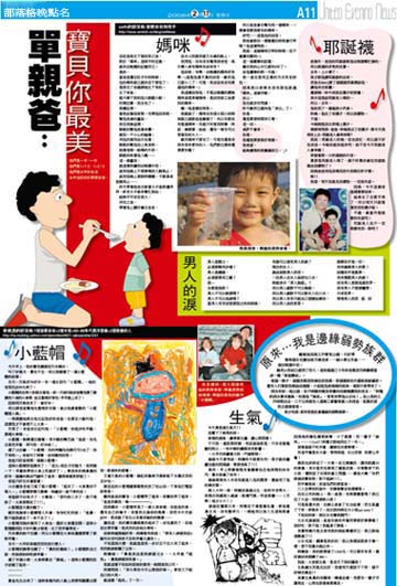 是的,當浩浩還在肚子中的時候,他的媽咪就已經決定不要他了,是我花了些錢請她生下來的。生下來後,就只剩下我和他大眼瞪小眼,吃喝拉撒,我全包了。我還記得,當我從褓母家第一次帶他回來時,幫他洗澡的畫面,放在洗臉盆裡,輕輕的幫他洗著身體,就怕一不小心的碰傷;用他的御用浴巾包著,輕輕的幫他拍上爽身粉,泡著他唯一能喝的牛奶,輕輕的哄著他入睡……這一個畫面,就這樣持續到幼稚園中班,直到他晚上不想要喝奶入睡為止,直到他晚上要跟阿嬤睡、不跟臭老爸睡為止……