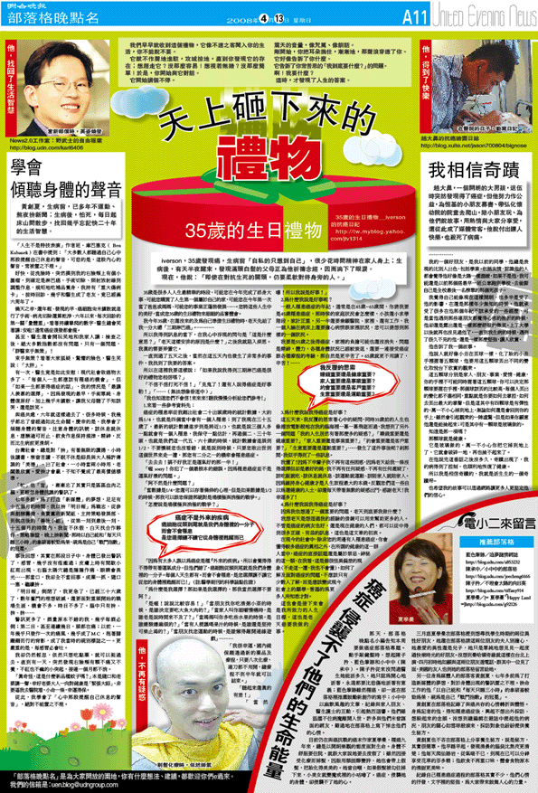 35歲的生日禮物__iverson的抗癌日記 http://tw.myblog.yahoo.com/jtv1314