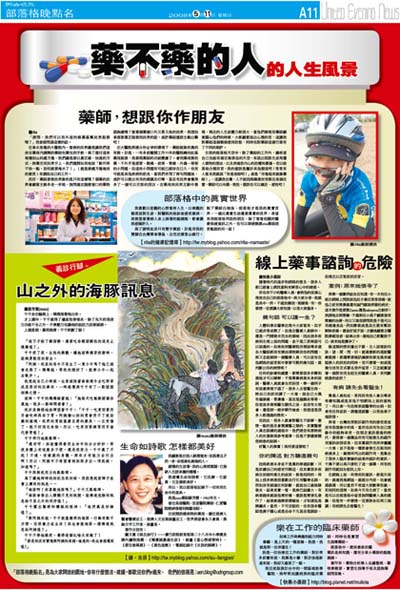 「請問,我們可以到外面的候藥區幫民眾服務嗎?」我曾經問過這樣的話。 在車水馬龍的大醫院內,看病的民眾總是讓我們這些在藥局內調劑的藥師包藥包到手軟,為了應付這些堆積如山的處方箋,我們總是要以最正確、快速的方式,將藥交到民眾手上,我們還開玩笑地說「動作再不快一點,恐怕就要淹水了!」(就是被處方箋淹沒的意思)來調侃自己的工作。 然而,藥師要替民眾做的是只有這樣嗎?領藥的民眾會願意主動多走一步路,詢問僅在隔壁窗口的藥物諮詢處嗎?看著領藥窗口外又累又急的民眾,我想如果想要真正服務到民眾的話,或許藥師應該主動出擊吧! 在大醫院那樣分秒必爭的環境下,藥師能做的真的有限。於是,一年多前離開工作六年的醫院轉向社區藥局服務,我發現藥師的功能變廣了。會到藥局買的藥,不外乎是感冒、酸痛、疲勞、胃痛、外傷…等等的小問題,但這些小問題有可能已經存在已久,也有可能是其他疾病的前兆,當我們多問了兩句問題後,或許可以提出有用的建議及叮嚀,甚至有民眾會覺得多了一個可以交談的朋友。在藥局與民眾互動中發現,現在的人生活壓力都很大,當他們發現有藥師願意關心他們的時候,大都願意說出心裡的苦,這讓我對藥師這個職業感到欣慰,同時也對藥師這個行業有了不同的期許。 在我的部落格天空中,除了藥師的工作外,總希望自己也能有個百無禁忌的天空,來說出我對生活周遭人事物的想法,以及表達我內心的恐懼與憂傷。若以部落格分類而言,我的應該是屬於其他類型吧!常常有人看見我就說「你是老師吧!」或是「你看起來就像藥師!」,這讓我自覺,人不能因為職業而受限在某個位置,藥師可以冷調、理性,應該也可以瘋狂、感性吧! 格主自我介紹 部落格中的真實世界 我喜歡以悲觀的心情看待人生,以樂觀的態度面對生活,對醫院的急診室感受最深,即使是看著病人身上掛著的點滴瓶,都會讓我感傷許久。 為了證明並非只有雙手萬能,於是用我的雙腳在台灣單車環島、去尼泊爾登山健行。脫下藥師白袍後,部落格才是我的真實世界,一個比真實生活還要真實的世界,希望來到部落格拜訪的朋友,除了看看相關的醫療保健資訊之外,也可以順便瞧瞧rita藥師胡言亂語的另一面! 【rita的健康記憶庫】http://tw.myblog.yahoo.com/rita-namaste/