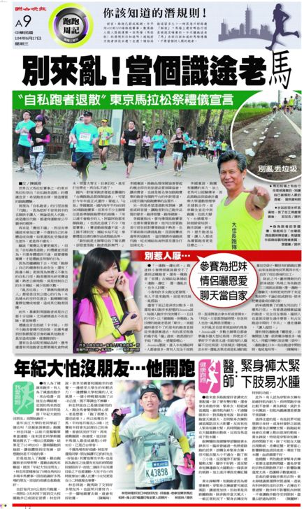 世界五大馬拉松賽事之一的東京馬拉松祭出「自私跑者退散」的禮儀宣言,希望跑者自律,營造優質的路跑體驗。