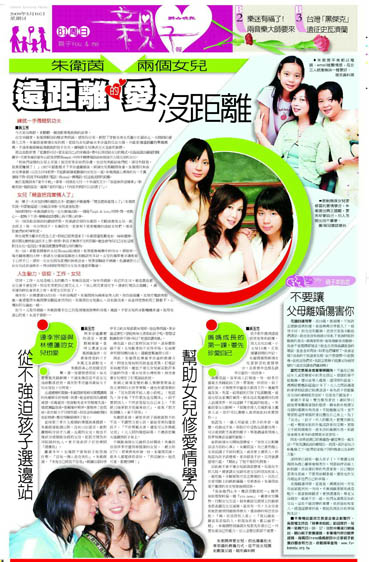 如今,又是母親節,朱衛茵慶幸自己仍是個健康快樂的母親,她說,不管女兒的身影離她多遠,但母女連心的愛,永遠不會斷…