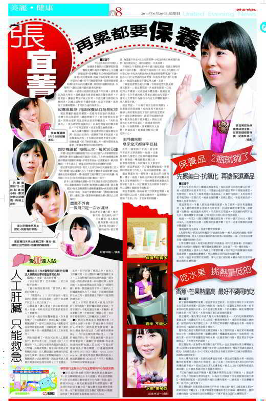 身為皮膚科醫師,張宜菁認為注重保養是功課,把自己完美的一面展現在患者的面前,也是專業的表現,才有辦法說服患者接受治療。但她強調,除了臉部保養以外,體內環保更加重要,要讓身體保持活動的狀態。