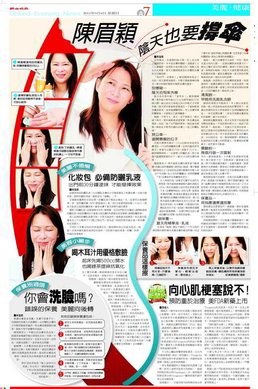另外,陳眉穎發現,大多數女性做臉部保養時,都只做到下巴,忽略頸部。隨著歲月流逝,脖子的皺紋越來越多,也越來越深,就算臉頰仍光滑細緻,頸部卻已洩露年齡的秘密。因此每次保養時,她總不忘多按摩頸部幾下,確定保養品已滲入皮膚才停。