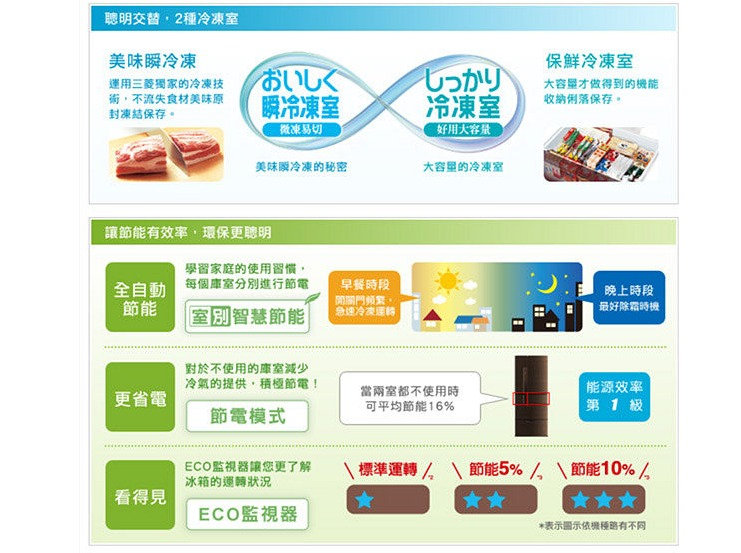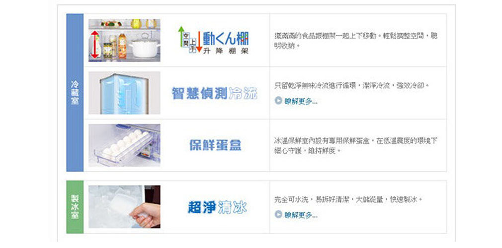 ■微凍易切瞬冷凍 ■鮮脆水潤蔬果室MOIST ROOM ■多種獨家技術
