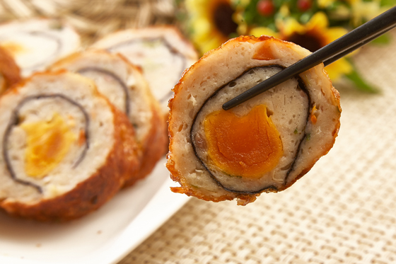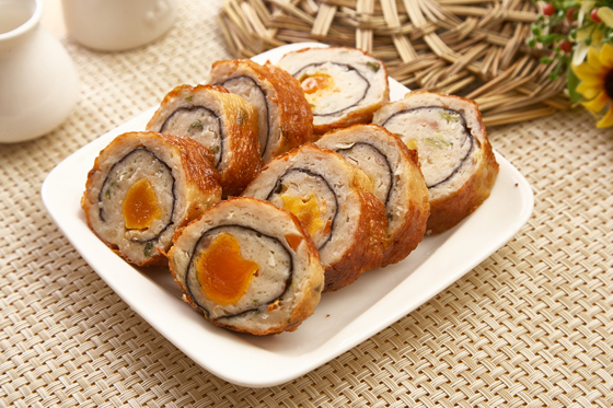 一片片誘人的斷面秀,看見豐富的旗魚與鹹鴨蛋,外頭還有一層鹹香脆的海苔,不管大人小孩攏總愛呷!
