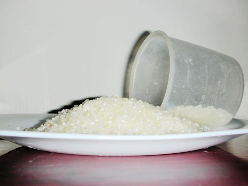 看著米粒一顆顆拍打著盤底,當杯米整個倒在盤中,呈現的是均勻的米丘,從側面看來則近乎一整個常態分配圖形。