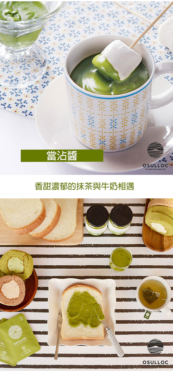 來自韓國熱門抹茶專賣店【O'SULLOC】,香濃綿稠的果醬質地,與牛奶的完美結合,無論是搭配吐司、冰淇淋還是餅乾,獨特的苦甜與濃郁香氣,在嘴中激盪出最完美抹茶滋味。