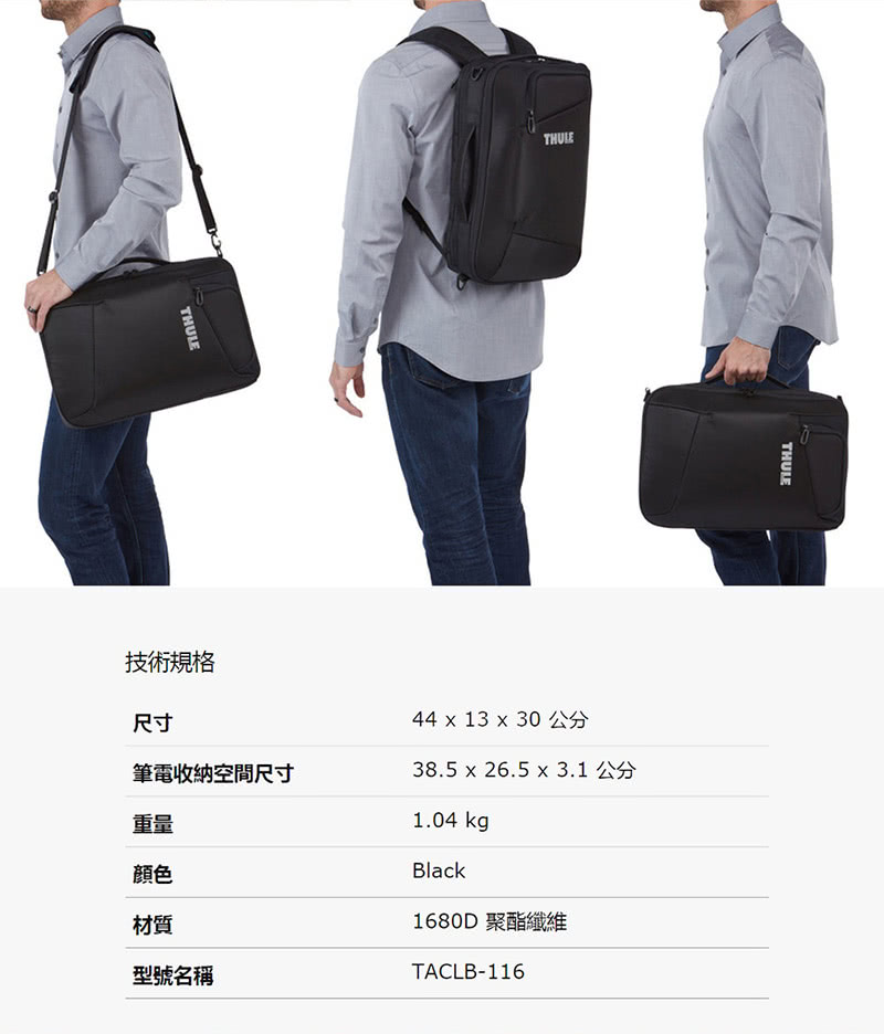 NEXSTGe-payless百利市購物中心品牌桌機O【Thule 都樂】Accent 兩用筆電公事+後背包(TACLB-116)