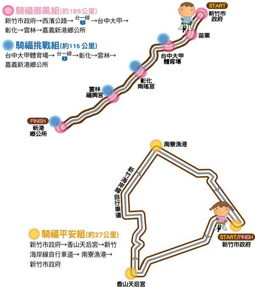 1. 騎福御風組【新竹至新港】:185公里 (費用500元)