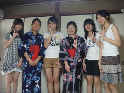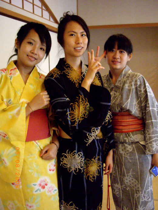最新鮮的莫過於浴衣的體驗了,在日本的街頭不管什麼時候都可以看見穿浴衣的男女(以前總以為只有在夏日祭典的時候才會穿浴衣),沒想到竟然可以將古代的衣服流傳至今,甚至有這麼多人在穿 (像在台灣沒見過有人穿著旗袍在街上走吧!) ,不過沒想到連穿浴衣也這麼的麻煩,講究邊線的位置、衣服的縐褶,光穿上浴衣就要花費一番功夫了,留了滿身汗。而且穿上浴衣,每個人都是淑女,因為手腳都被限制住了,想要奔跑也沒辦法,只好乖乖的使用小碎步走路,但是我不會想要在大熱天將這身衣服穿出門,日本的夏天…超級熱。