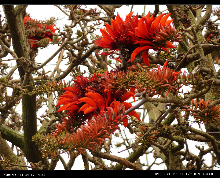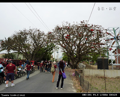 中午過後,車隊回到了安南區。這是咱長安國小附近的夫妻刺桐樹,在未縣市合併前,以路為界,照片右方是臺南市安南區的布袋里,左方是臺南縣安定鄉的沙崙村,可有趣了!這還煞有其事的辦過聯姻典禮哩!