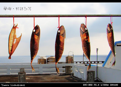 用完早餐的這一刻,部落裡正洋溢著豐收的氣氛──前一夜捕回來的飛魚,已經飽滿的日曬著。