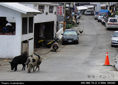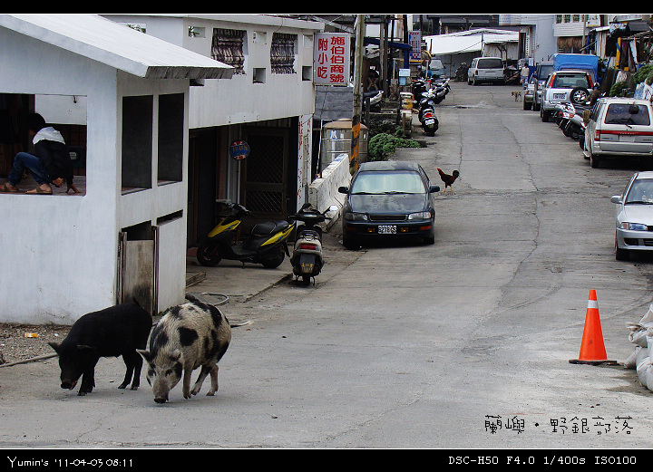 部落裡,人、雞、羊、豬,大家是和諧共存的,騎機車的我們顯得多餘,擾人清夢……