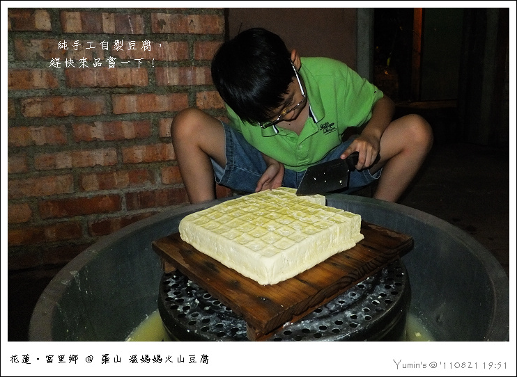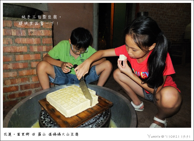 ……能親手從磨黃豆開始,做出 一板泥火山豆腐來,更少見!花蓮富里的羅山,富含泥火山地形,湧 出來的泥流,因富含特殊礦鹽成份,當地人善加利用,將之倒入豆漿 中,成為天然的「凝固劑」,以取代一般用的石膏。如此,成份更天 然,風味卻也更勝一籌──吃來綿密,更帶有鹹鹹的風味,挺特別的 !