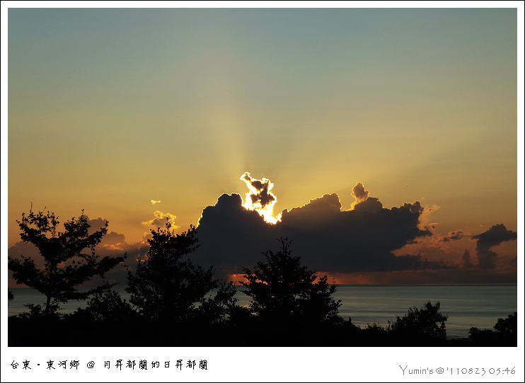 至於日出,對我來說,從來就不曾成功的見過日頭蹦出海面的影像──這天,自是又功敗垂成。不打緊,這無損 於愜意的……