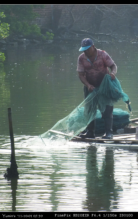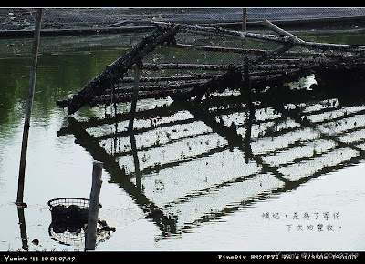 今晨,本想騎得更遠(好久沒去看看那七股的藍),不過稍陰的天空讓人擔心。果不其然,車子才剛轉進臺江大道,魚塭裡的漣漪已忙不迭的提醒騎士們,有雨衣就趕快穿上吧!不過,我是滿鐵齒的,更想淋淋雨,享受一下沁涼,所以,只是加快了腳步,用超越單車欣賞風景該有的速度前進。