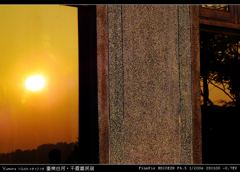 民宿業者注重養生,內外環境宜人,除了業者的用心布置,遠望西端餘日,竹林搖曳,窗上映照著的落日樹影,更顯恬適。