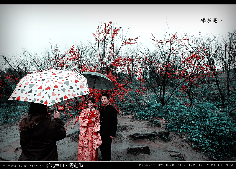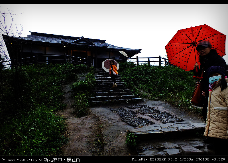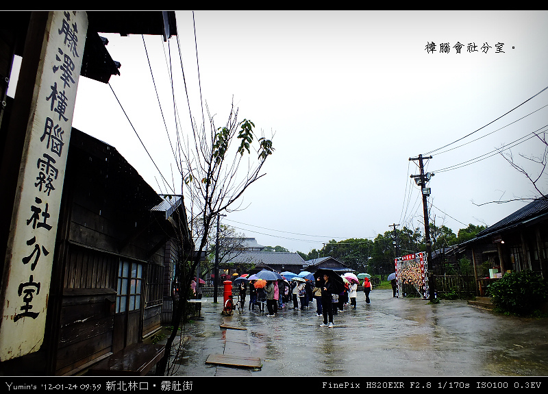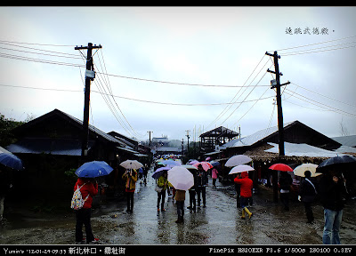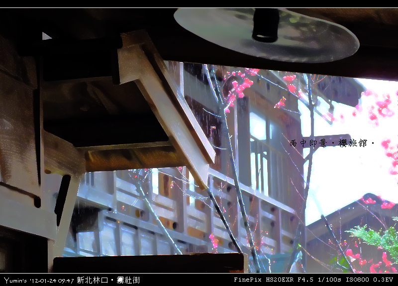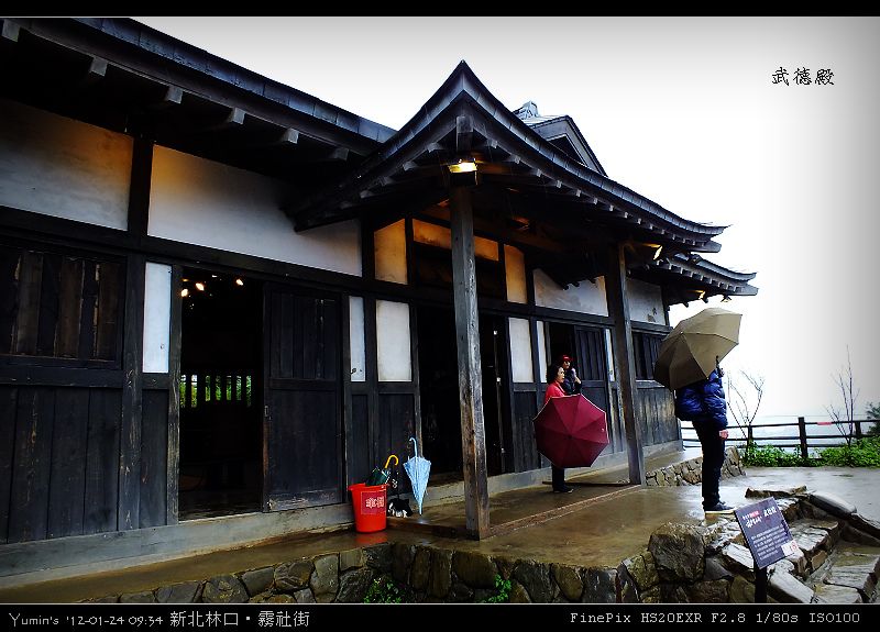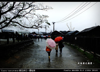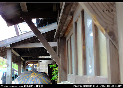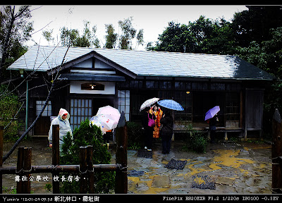 是啊,當像「世博臺灣館、花博爭豔館」都能再現、霧社街卻難以保留時,我不知道多數人的想法是什麼,但我卻想像魏德聖導演的真性情一樣,罵幾個「×」字出來。當然,「賽德克‧巴萊」一片不是紀錄片(據一些尖嘴猴腮的影評人說,無論文戲、武戲都還有進步的空間,anyway.),霧社街也不是博物館,沒有偉大到非全民來救它不可,但面動一群人的奮鬥而讓人感動時,心中沒有一些想法是假的。這天,來到林口阿榮片場霧社街景,雨中造訪,更覺彼時搭建之艱辛和拍片之執著與拚搏。魏德聖導演對細節的堅持,加上來自日本的美術團隊的一樣堅持,造就了這裡;魔鬼藏在細節中,其實,精彩也隱含在細節裡。一如霧社街裡迷人的霧社分室(相當於現在的警分局)。這裡是電影中戲份相當吃重的場景,內外陳設異常考究,無論是文件之重造、家具之擺設、辦公用具之復古、燈光氛圍之營造……在在讓人歎為觀止。霧社街之考究,可再從「櫻旅館」一景探出究竟。就如同其他任一景,細節之講究,讓人歎為觀止;更讓人驚訝的是,在如此的堅持之後,為了配合整部戲的節奏,有「櫻旅館」出現的戲份,硬是被刪了大半,僅存一閃即過的畫面。而郵便局之搭建更是如此,細工之後的成果,就是在上下集,各出現了「兩秒」。其他的建物,如公學校、校長宿舍、金墩商店……等三十幾棟,就不再贅述,反正,就是一個精彩了得(網海裡有很多網友寫了很多比我精彩的遊記,可以參考參考喔)。呵,八億的票房,當然不是假的,這些來霧社街的人潮也不是假的。絡繹不絕的人潮,也許是趕流行、也許是湊熱鬧,但更多應像我,帶著幾近朝聖的心情前往。當日雖雨,人潮卻未斷,所以我並無緣(其實也沒有什麼心思)進去各棟建物一探內部陳設,亦未能細細品味外部建築及布局之美,殊為可惜……無心思,因為終究,再多的人潮,是敵不過僵化的法令的,更敵不過政客們虛偽的言語和假惺惺故作姿態。