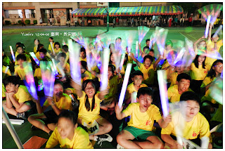 不過啊~~若沒有我們五年級「High 跤」們的「瘋狂尖叫」加「閃亮亮加油棒」,一定會相形失「色」吧 ^^ !