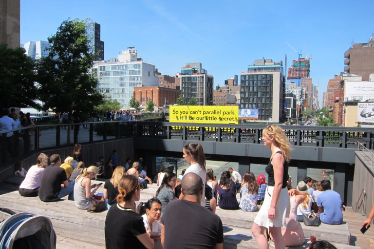 中央公園裡的畢士大露台被封起來辦慈善餐會,幫公園的基金會募款,達科塔公寓也在整修中,但草莓園仍舊擠滿觀光客,紀念品攤販賣著一排漫威英雄坐在半空鋼筋上的畫作,有銅管五重奏和老嘻皮彈披頭四,夏日遊樂園還沒換成溜冰場,餐車裡希臘食物Chicken Gyro比美式漢堡普遍,MOMA旁有一攤還賣到排隊。