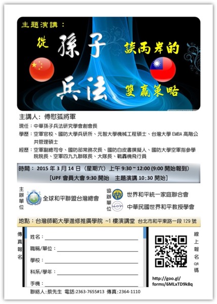 敬邀您參加2015年3月14日全球和平聯盟會員大會及主題演講