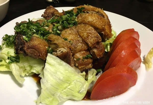 油淋脆皮雞,這道真的有嚇到我,居然是泰式的做法,跟泰式椒麻雞是同一家的,皮炸的方式也是一樣,最後上來後淋上酸甜醬汁,如果這不是泰式椒麻雞的親戚,那種才是呢?