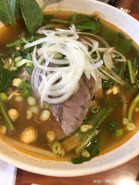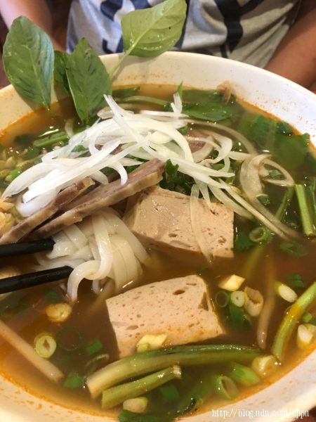 順化肉河粉,湯頭帶甜味,需要加檸檬來中和味道。