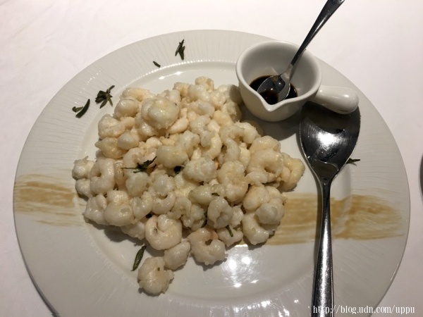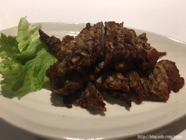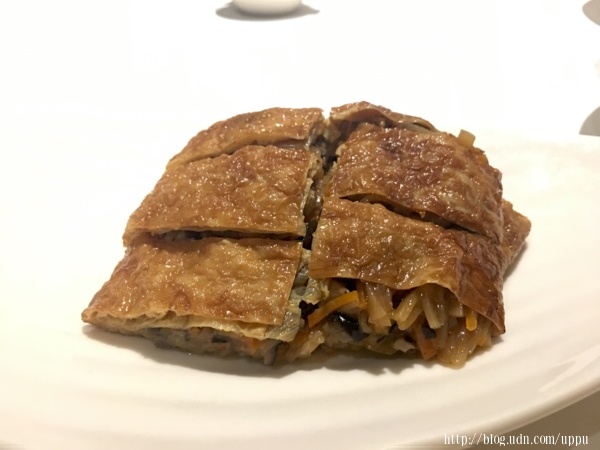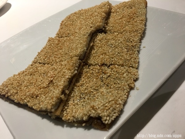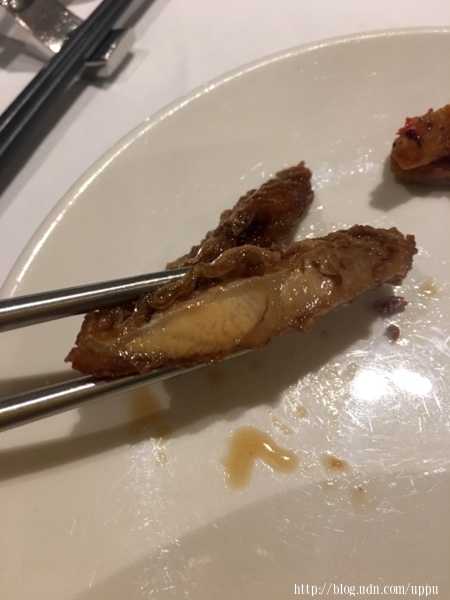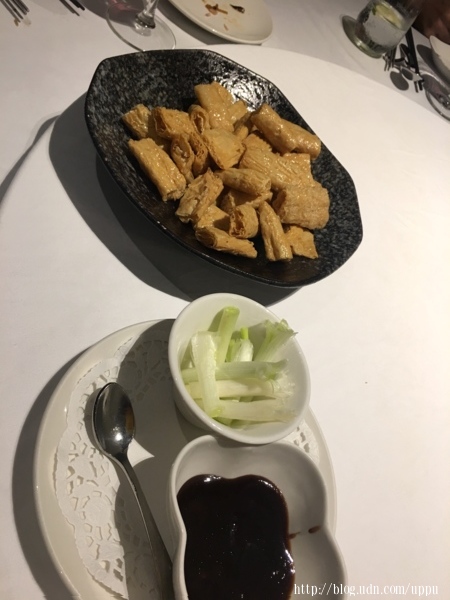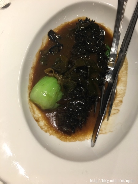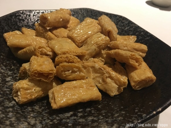 炸響鈴,可惜了有焦苦味,後來主廚一桌一桌出來打招呼,老爺居然問他為啥炸響鈴有苦味,主廚說就像我們去喝豆漿,也會有點臭火搭的味道。(不問還好,答了就覺得是話唬爛),去吃吃人家軒維的,從來沒讓我吃到燒焦味。