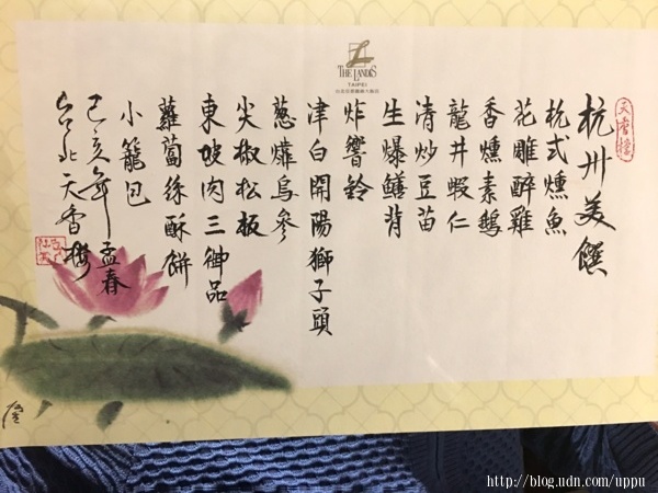 這時餐廳經理過來介紹說:我們點好菜就請書法老師逐字寫在捲軸上給我們做紀念帶回家,這服務還真好。
