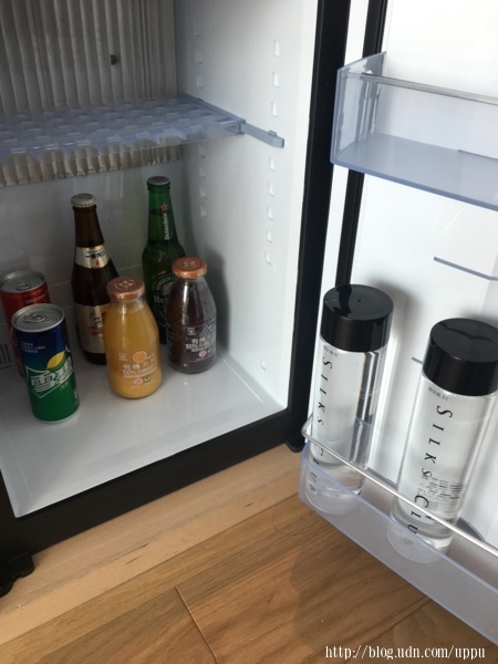 冰箱內的飲料全部免費,但最有名的瀨祭二割三小瓶裝的已經沒有了,真的是傷害總在比較後,問過服務人員才知道要一些比較高級的房型才會有放,這種普通的房間都已經降價所以減價後有些東西就會自然的消失~