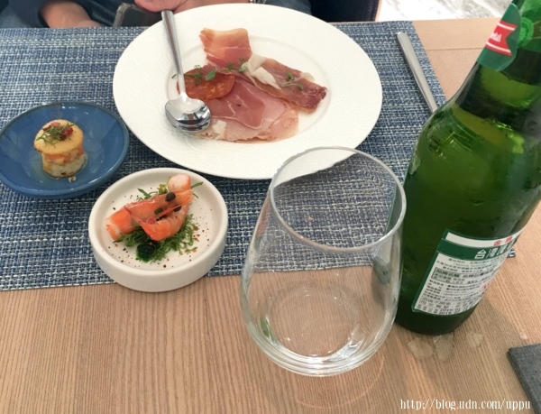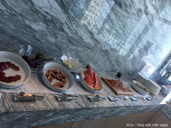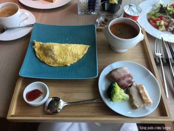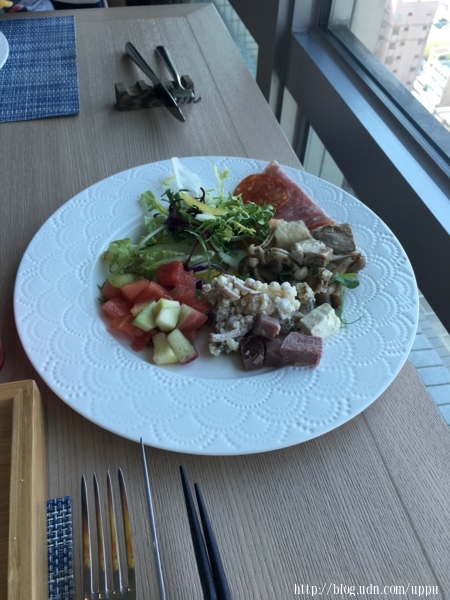 早餐用餐的地點一樣是在28F,半自助的型態,主菜單點,沙拉吧自取。