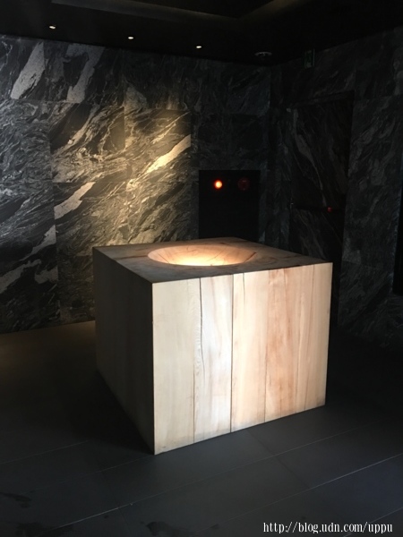 三溫暖前面的裝置藝術,就是檜木增添香氣用,但聽說真的有些房客以為這邊是丟毛巾的地方,順手把毛巾丟在此~痾~有沒有這麼瞎?
