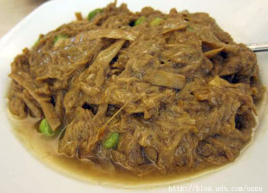 中午吃這家,學妳點了扁尖腐衣,沒想到小姐立刻說,腐衣有煙燻味可以接受嗎,我問不是燒焦吧,回說不是不是。