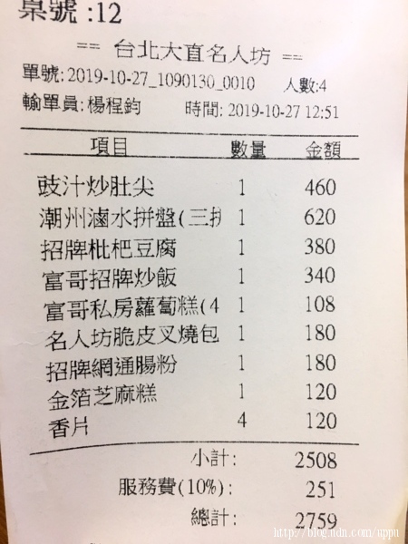 結帳金額2759,這餐很滿意,應該很快就會再光臨。